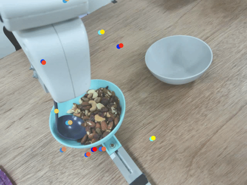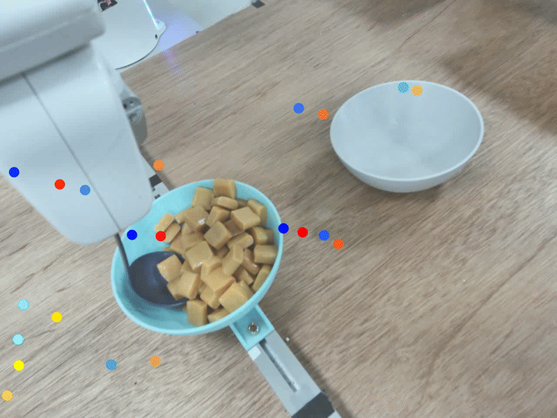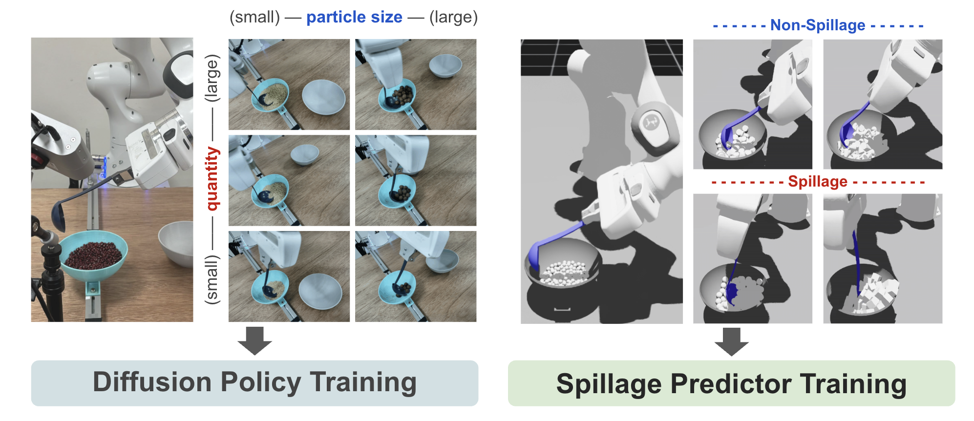 We collect 80 real-world expert demonstrations across different food types and quantities to train the diffusion scooping policy. On the other hand, to reduce labor-intensive cleanup required under real-world settings, we collect 4,000 food spillage and non-spillage cases in the simulation, to train the spillage predictor.